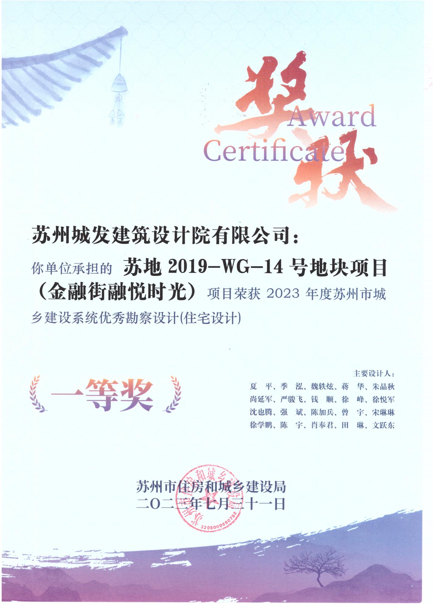 2023年度蘇州市城鄉(xiāng)建設系統(tǒng)優(yōu)秀勘察設計(住宅設計)一等獎